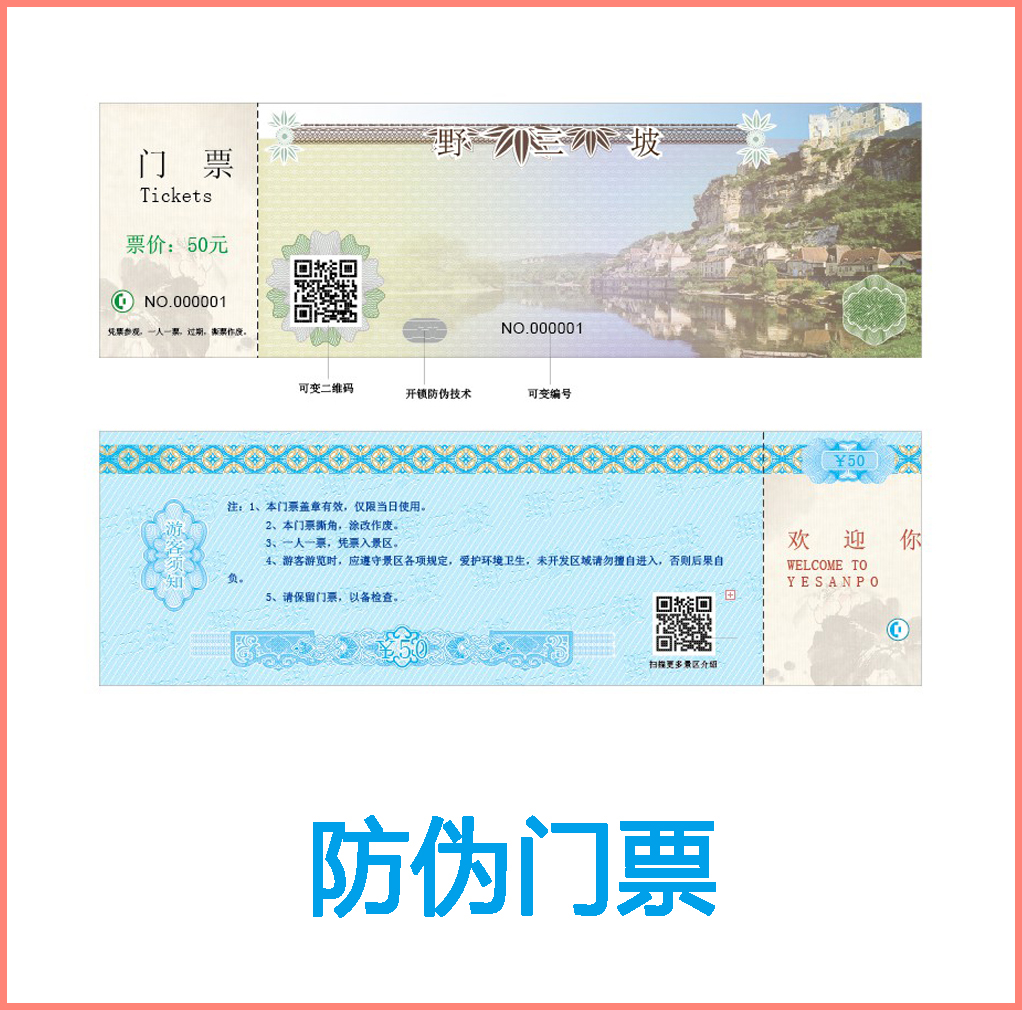 门票行业越来越猖獗,像一些价格比较高的门票,比方,大型文艺演唱会、体育比赛、、览会以及旅游景点门票,都呈现过伪钞疑问,不法分子会经过制作伪钞来获取暴利。因而,为了保护主办者和消费者的合法利益,保护精力和文化领域内的市场秩序,门票的防伪有必要选用难于仿制的高科技防伪技术。